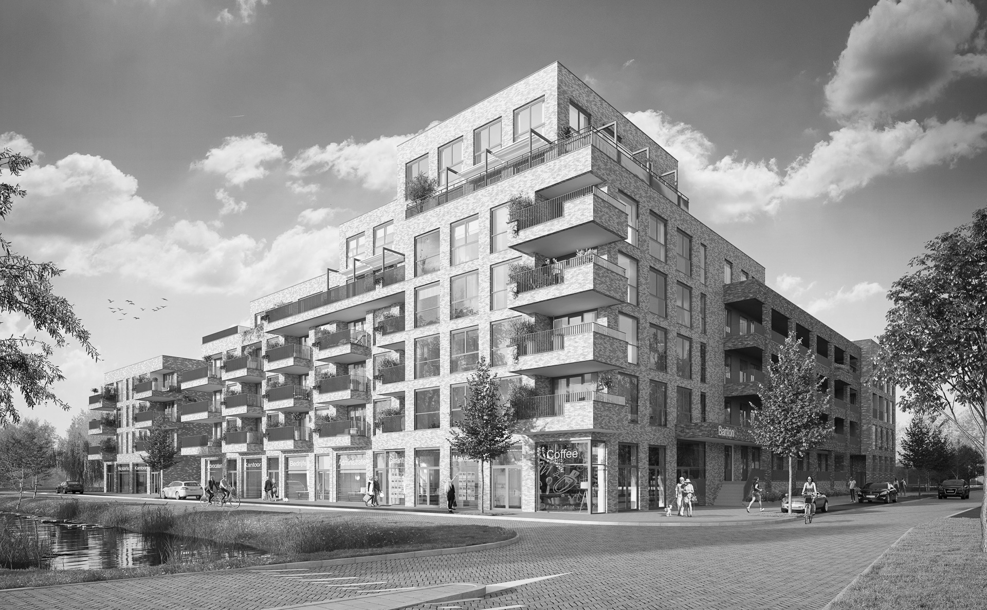 Deze ontwikkeling van Nederland Ontwikkelt heeft LMV bouw+kundig mogen uitwerken; Definitief Ontwerp, Omgevingsvergunningaanvraag, Verkoop- en Contracttekeningen, als de Uitvoeringstekeningen.