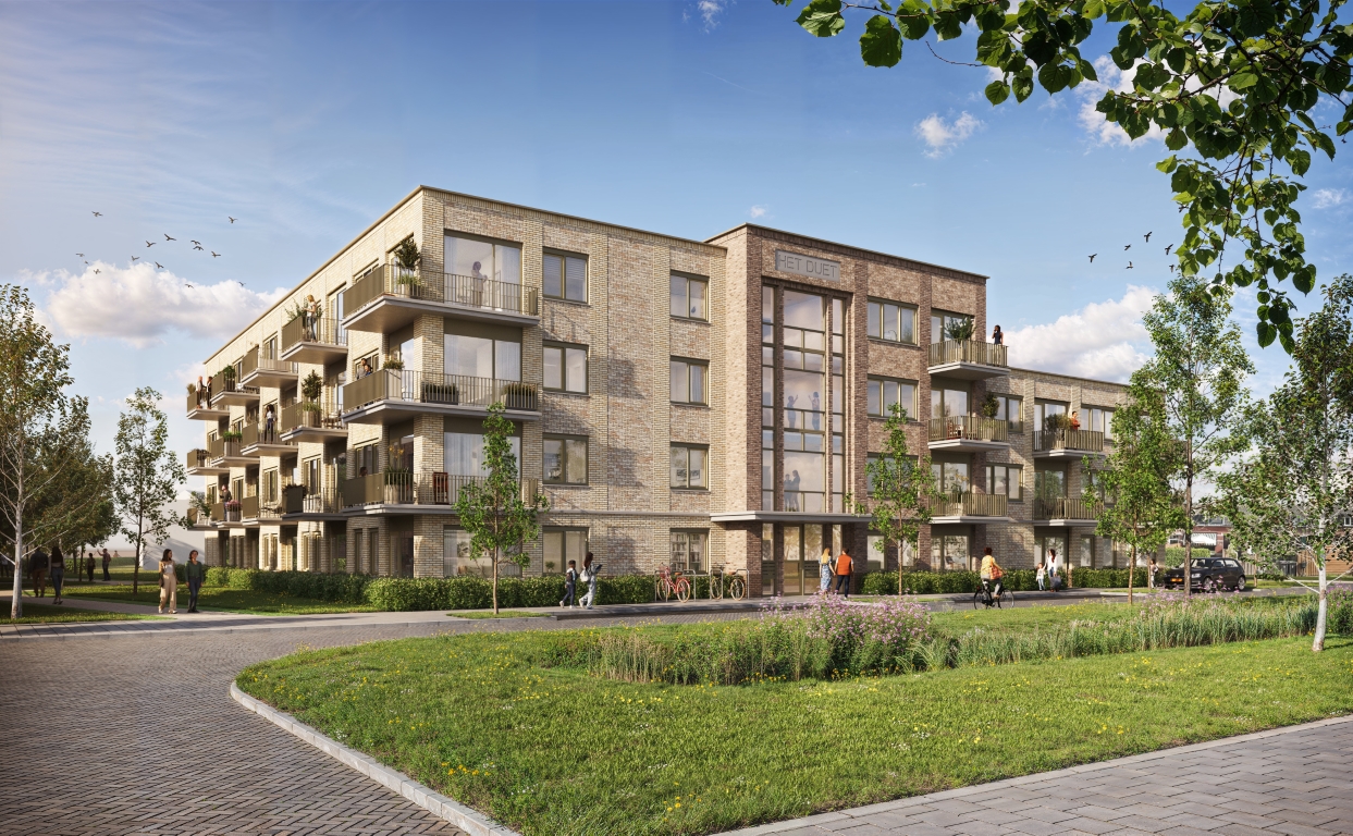 In opdracht van Ibelings van Tilburg architecten mogen wij 33 sociale huurwoningen bouwkundig uitwerken, als onderdeel van het project Acapella Wonen te Hellevoetsluis. In deze 2e fase gaan drie woongebouwen ontwikkeld worden met in totaal ca. 112 woningen en een horecagelegenheid, in opdracht van Nederland Ontwikkelt. De 28 appartementen en 5 grondgebonden eengezinswoningen werken wij uit met een samenwerkingsverband met DEJA bouwadviseur. De architectuur kenmerkt zich door een rondom doorlopende verdiepingshoge plint, begrenst door een horizontale betonnen bies, die het appartementengebouw en de vijf grondgebonden woningen tot één blok maakt. Het bouwblok heeft een gevelbeeld van een aantal verspringende volumes, waarbij twee tonen metselwerk en het toepassen van klampstenen dit beeld nog eens extra versterken. Ook de kopgevels zijn aantrekkelijk overhoeks vormgegeven met afwisselend ramen en vlakken met klampstenen.